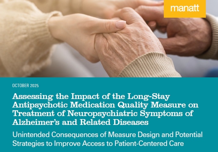 The report reveals that the Centers for Medicare & Medicaid Services’ (CMS) Long-Stay Antipsychotic Medication quality measure, while originally intended to prevent inappropriate use of antipsychotic drugs in nursing homes, has led to unintended consequences that restrict access to safe and effective treatments for more than 3 million residents with Alzheimer’s and related conditions.